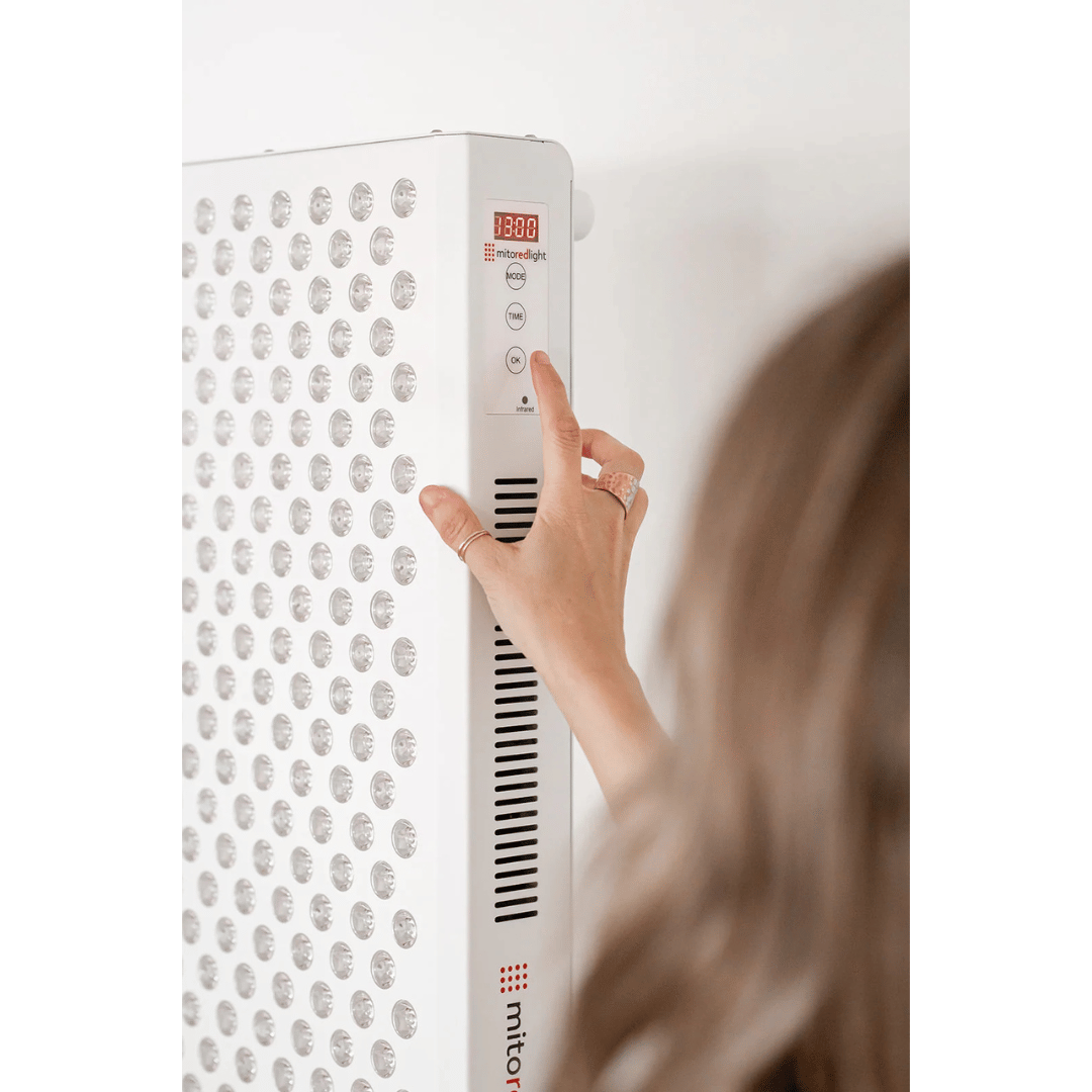 Die Verwendung von Mito Red Light-Geräten fördert gesunde Haut sowie allgemeine Gesundheit und Wohlbefinden durch Unterstützung der zellulären Funktion. Mito Rotlichttherapie-Geräte sind rezeptfreie Medizinprodukte der Klasse II, die Energie im roten und NIR-Spektrum abgeben.