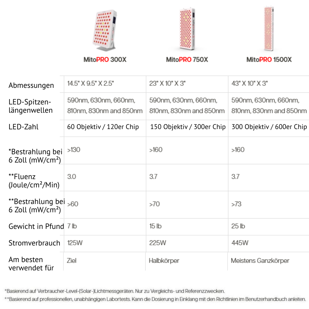 Rotlichttherapie MitoPRO 300X, 750X, 1500X