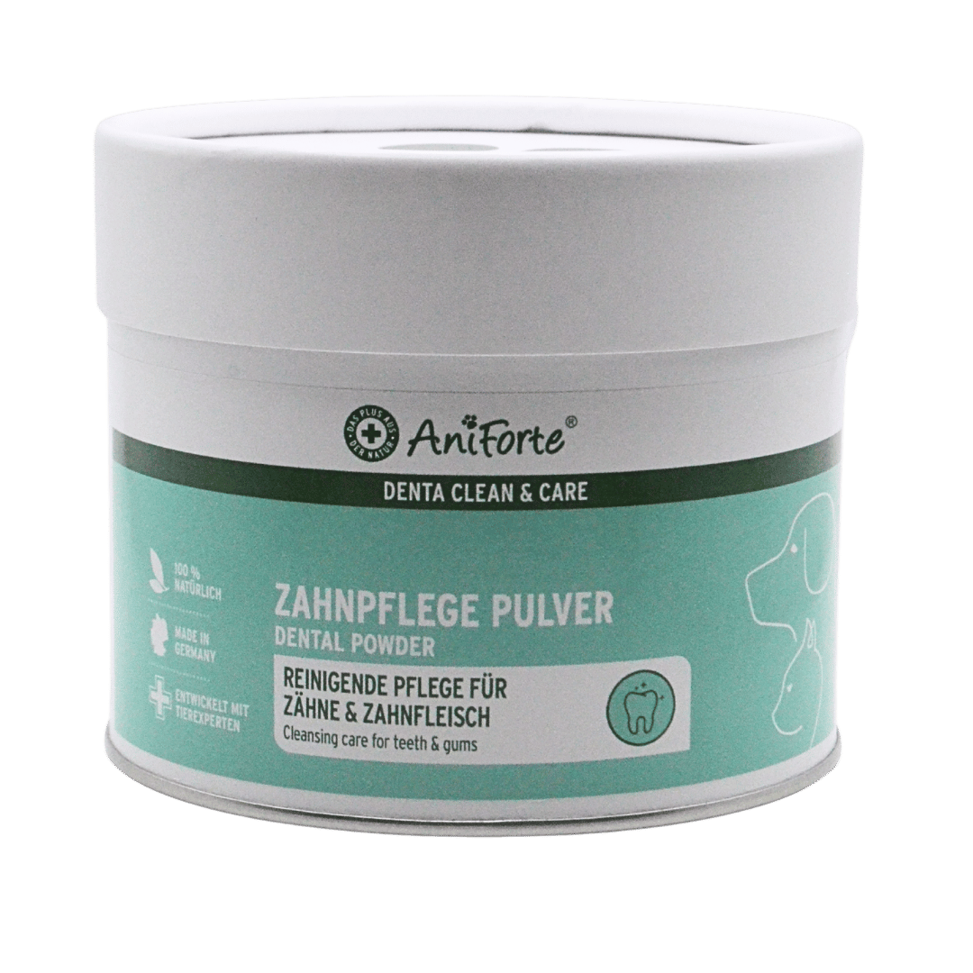 Das AniForte® Denta Clean & Care Pulver kann dazu beitragen, die Zähne und das Zahnfleisch Deines Tieres mit der täglichen Futteraufnahme auf natürliche Weise zu reinigen und zu pflegen. Eine gute Zahnpflege bei Katze & Hund spiegelt sich in der gesamtheitlichen Tiergesundheit wider.